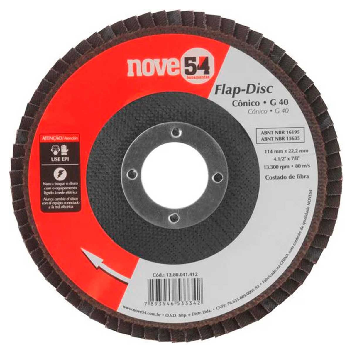 Disco de Acabamento/Desbaste Flap Disc G 40 115mm Nove54