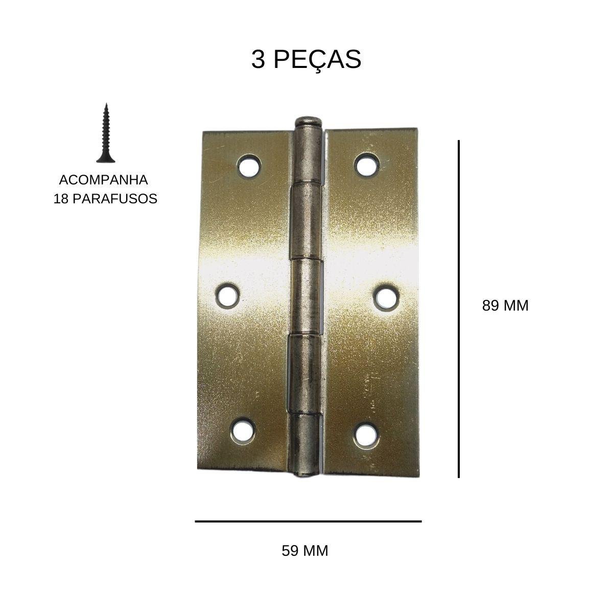 • Conteúdo da Embalagem: 1 Cartela com 3 Peças de Dobradiça para Porta FOE 3.1/2″ sem anel (18 parafusos inclusos na cartela)