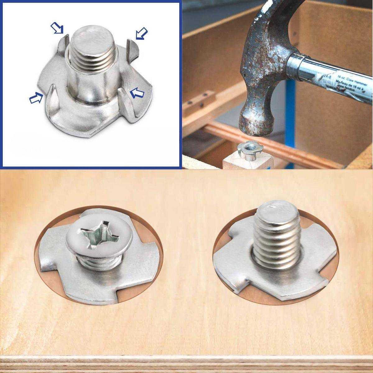 Para fixar a porca é necessário efetuar o furo na madeira com o mesmo diâmetro do encaixe da porca que será instalada, a porca deverá ser batida na madeira (uso de martelo) antes do uso pelo outro lado da madeira com o parafuso, isso garante que os dentes da porca se prendam a madeira e que a rosca fique alinhada para posteriormente rosquear o parafuso.