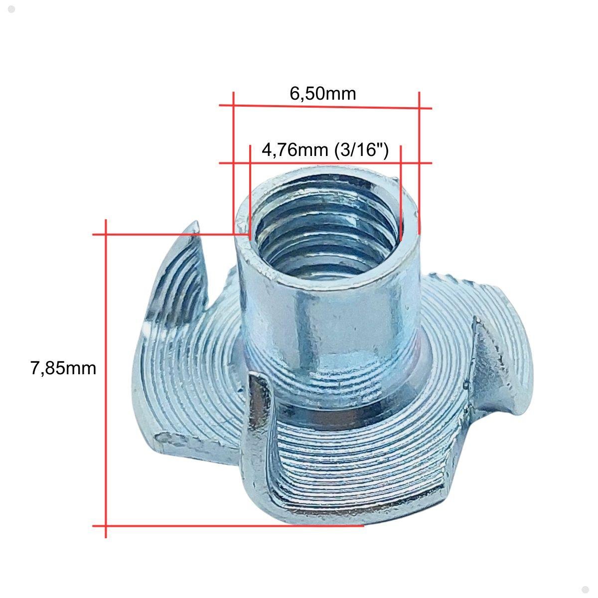 Porca Garra 3/16 Zincada Branca Pacote Com 100 Peças